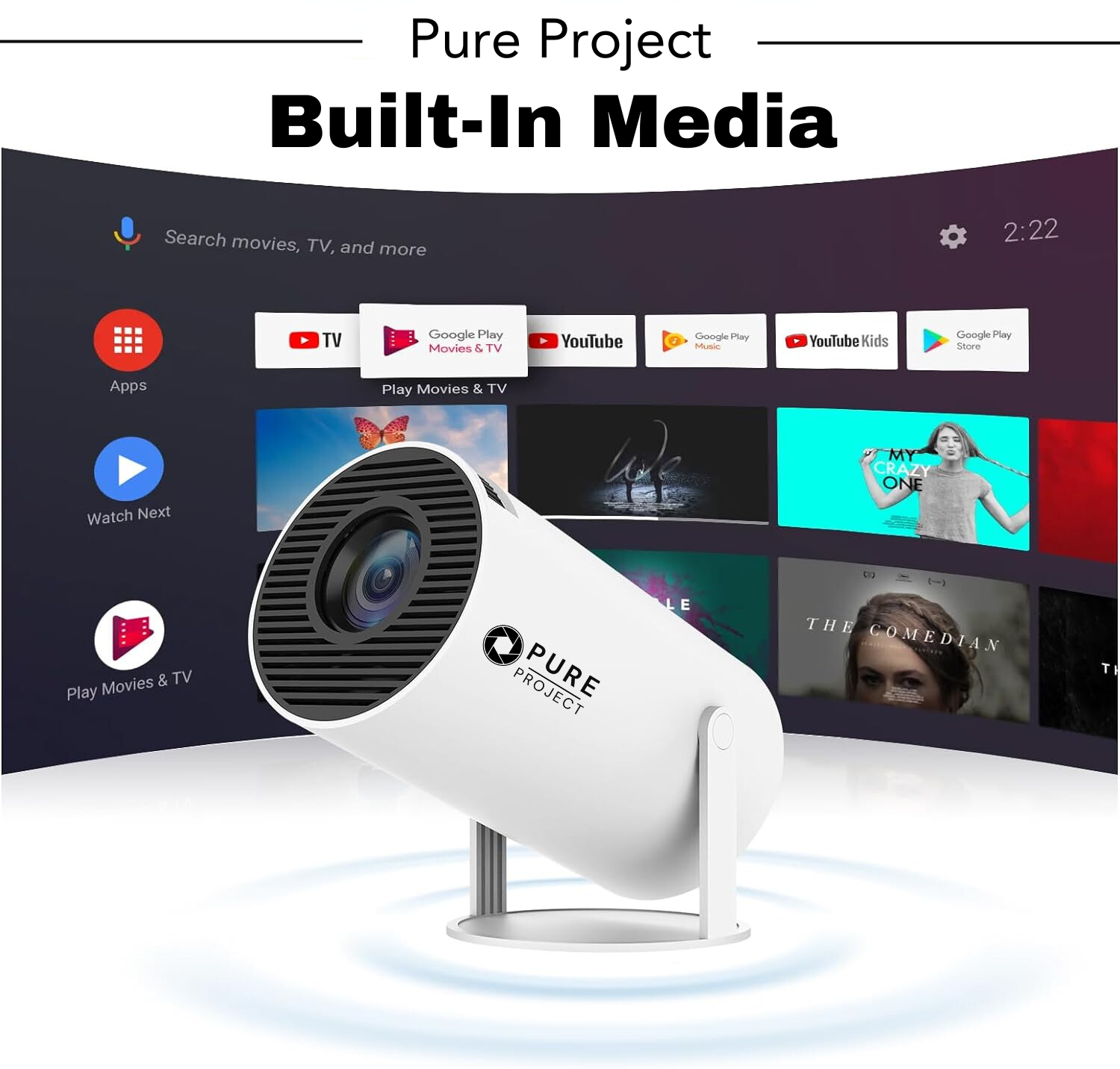 Entrez dans l'univers du divertissement sans fin avec le Pure Projector. Ses images époustouflantes, propulsées par la puce Hi-chip A3100 et le Wi-Fi bi-bande, vous offrent une expérience cinématographique inédite. Profitez d'images nettes et éclatantes et d'un son précis grâce aux haut-parleurs Hi-Fi intégrés. Oubliez les réglages fastidieux grâce à la correction automatique du trapèze pour un alignement parfait à chaque fois. Il vous permet même de vous connecter sans fil à des enceintes Bluetooth pour donner vie à vos films préférés en toute simplicité.